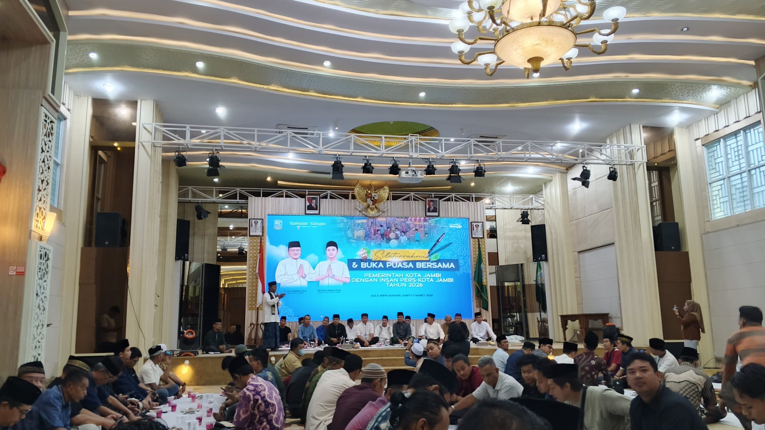DRADIO.ID – Wali Kota Jambi Maulana Bersama Pemerintah Kota Jambi , Untuk mempererat hubungan dengan insan pers melalui kegiatan silaturahmi dan buka puasa bersama yang digelar di Aula Griya Mayang, Telanaipura, Kota Jambi, Sabtu (08/03/2026). Kegiatan tersebut berlangsung hangat dan penuh kebersamaan dalam suasana bulan suci Ramadhan.